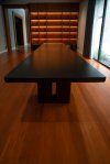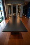 ลาดพร้าว กรุงเทพโต๊ะไม้สักขนาดใหญ่ ยาว 4 เมตร หนาถึง 3 นิ้ว พื้นผิวทำสีดำแบบเปิดเสี้ยนที่ทันสมัยแต่ยังคงความอบอุ่นของงานไม้ ตอบโจทย์การใช้งานยุคใหม่ด้วยฟังก์ชันซ่อนสายไฟในขาโต๊ะ ช่วยให้พื้นที่ทำงานดูโปร่งและสะอาดตา